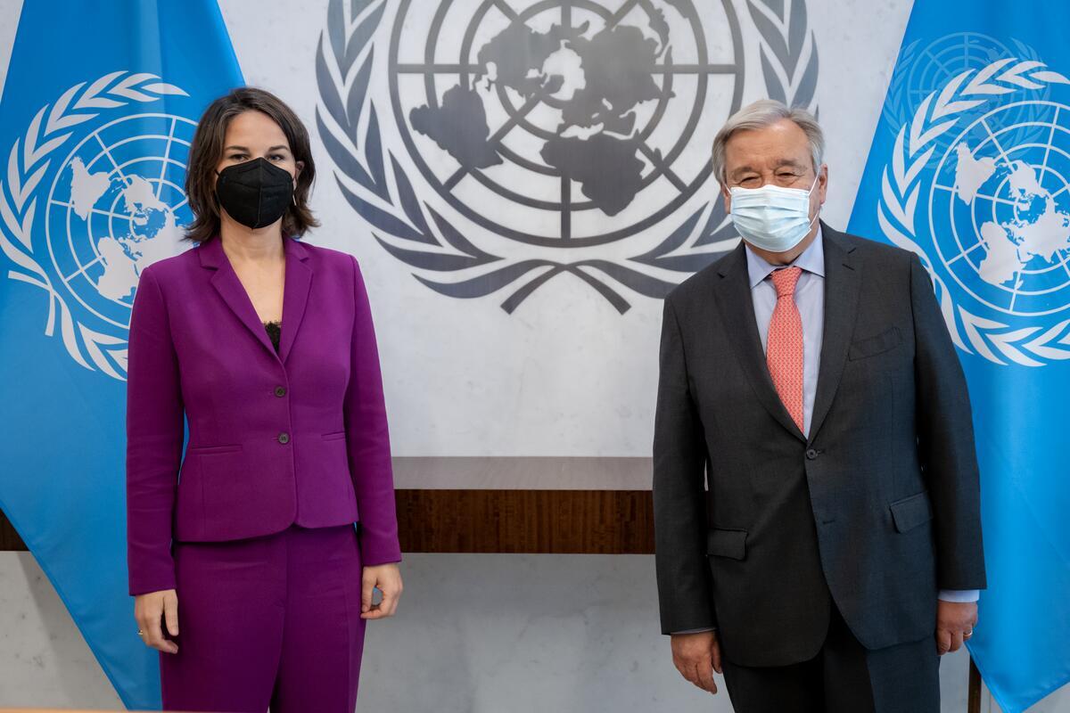 Secretary-General António Guterres (right) meets with Annalena Baerbock, Federal Minister for Foreign Affairs of the Federal Republic of Germany.