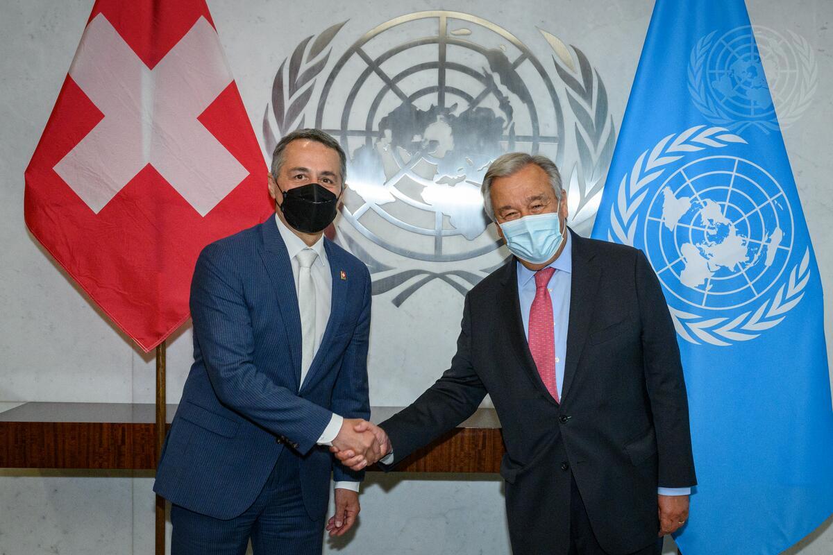 Secretary-General António Guterres (right) meets with Ignazio Cassis, President of the Swiss Confederation.