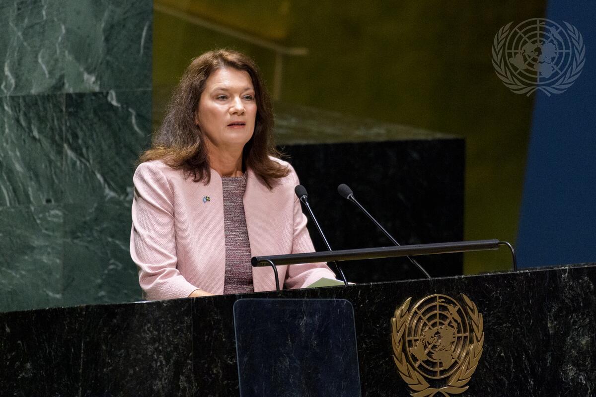 Ann Christin Linde, Minister for Foreign Affairs of Sweden, addresses, on behalf of the Stockholm Initiative, the general debate of the Tenth Review Conference of the Parties to the Treaty on the Non-Proliferation of Nuclear Weapons (1-26 August).