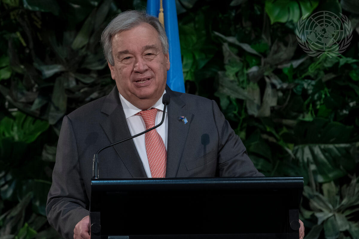 Secretary-General António Guterres addresses the media alongside Jacinda Ardern (not pictured), Prime Minister of New Zealand, upon his arrival to the country.