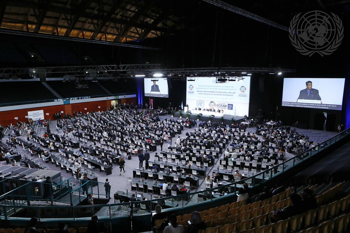 A wide view of the first day of the United Nations 2022 Ocean Conference in Lisbon, Portugal.
