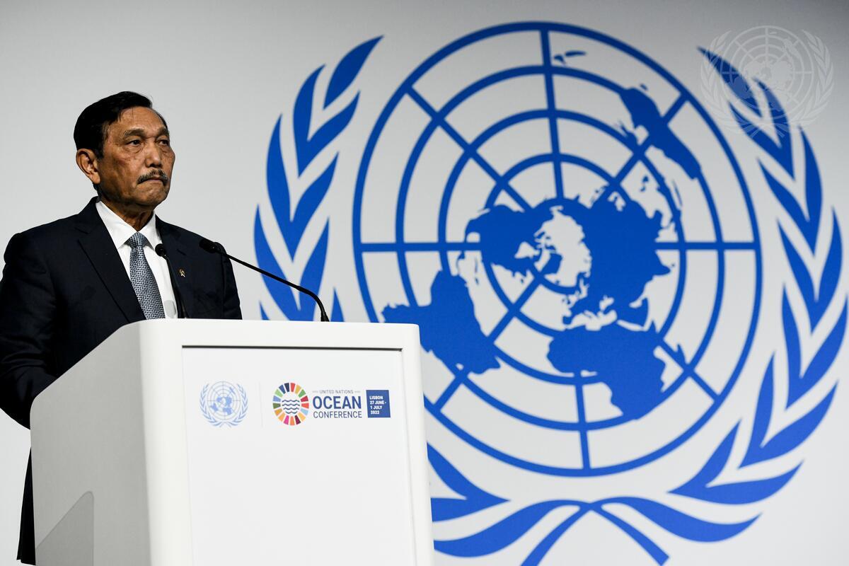 A representative of Indonesia addresses the United Nations 2022 Ocean Conference in Lisbon, Portugal.