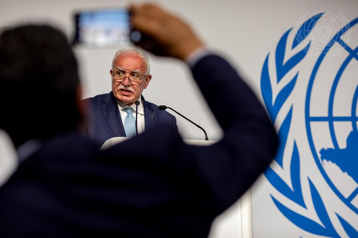 A representative of the State of Palestine addresses the United Nations 2022 Ocean Conference in Lisbon, Portugal.