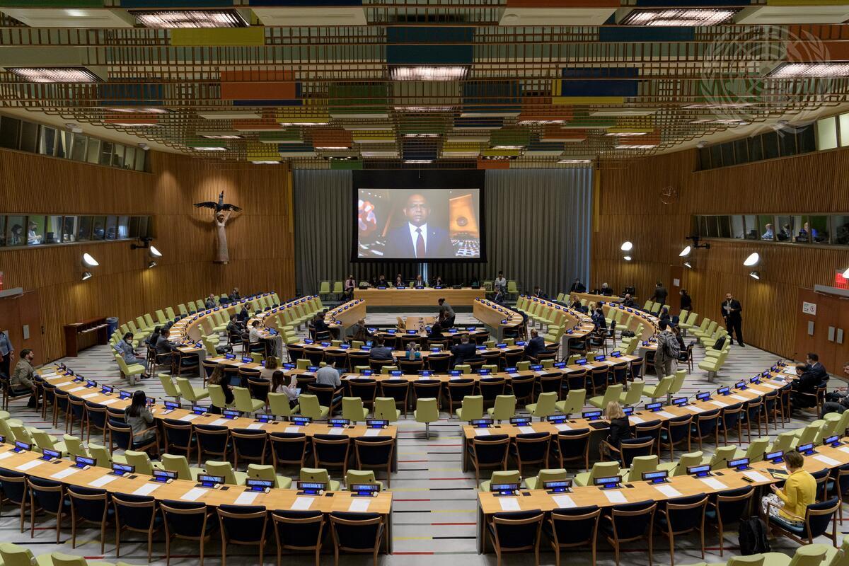 On the screen is Abdulla Shahid, President of the seventy-sixth session of the United Nations General Assembly.