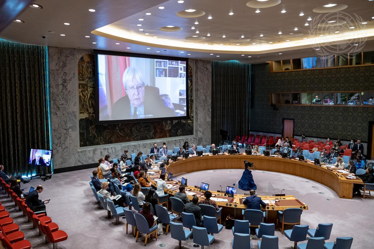Martin Griffiths (on screen), Under-Secretary-General for Humanitarian Affairs and Emergency Relief