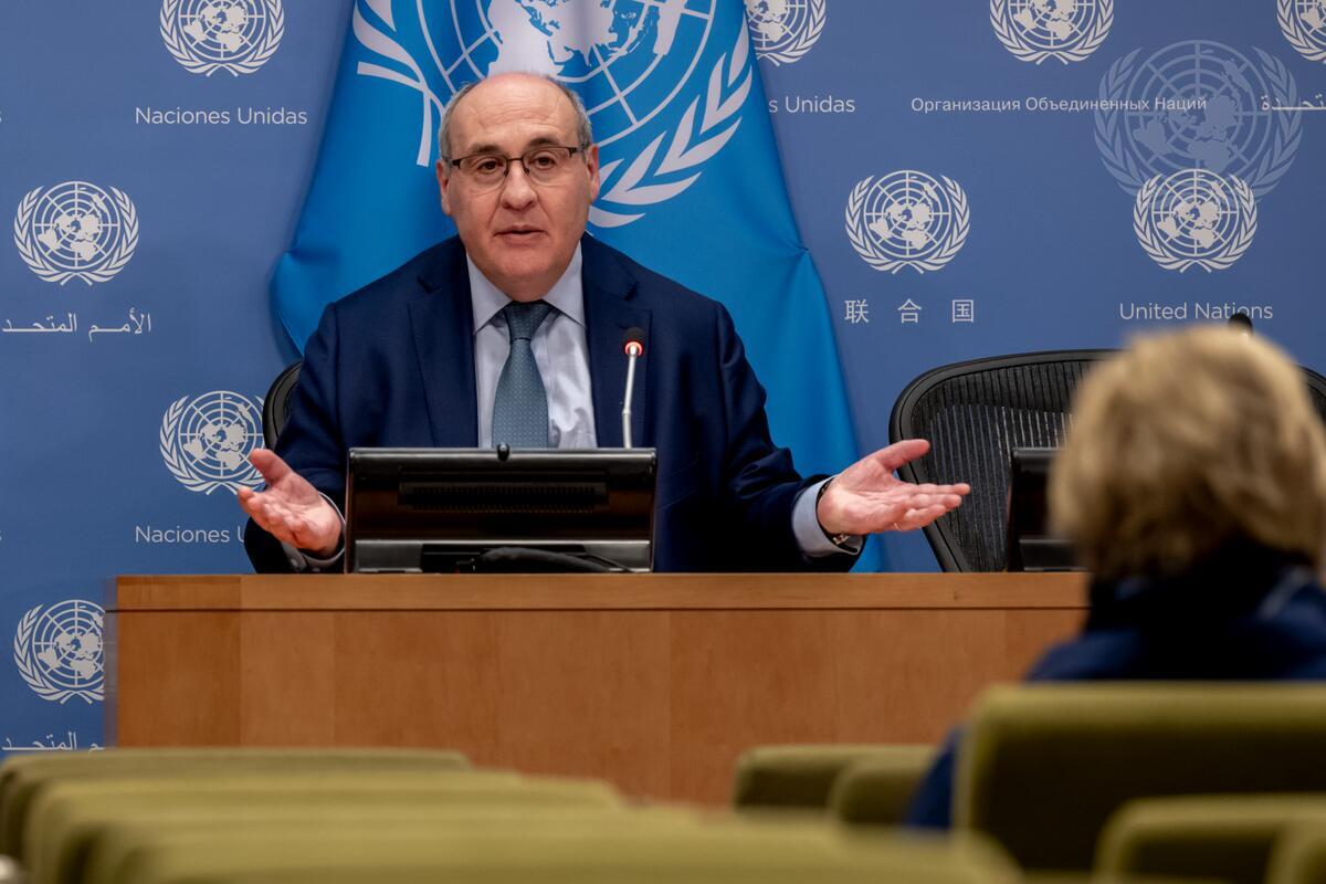 António Vitorino, Director General of the International Organization for Migration (IOM), briefs reporters at UN Headquarters.