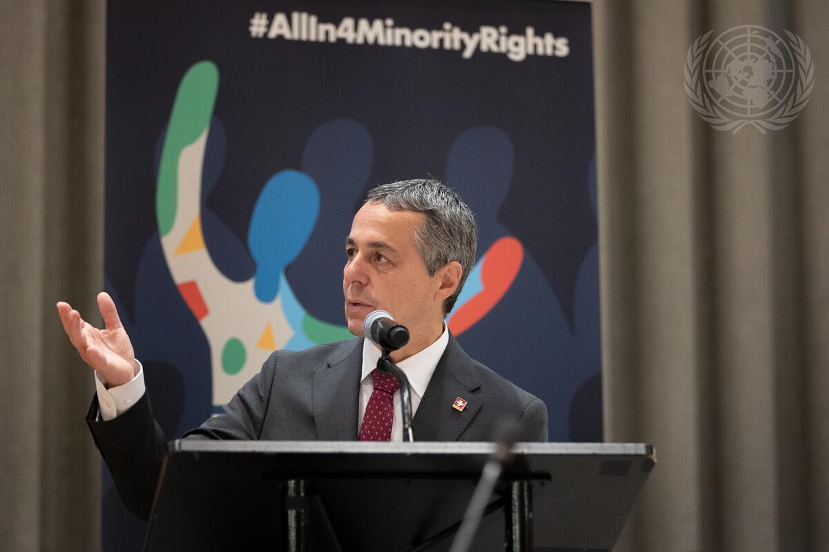 Ignazio Cassis, President of the Swiss Confederation, speaks during the high-level meeting of the United Nations General Assembly to mark the commemoration of the thirtieth anniversary of the adoption of the “Declaration on the Rights of Persons Belonging to National or Ethnic, Religious and Linguistic Minorities” held on the second day of the General Assembly’s general debate.