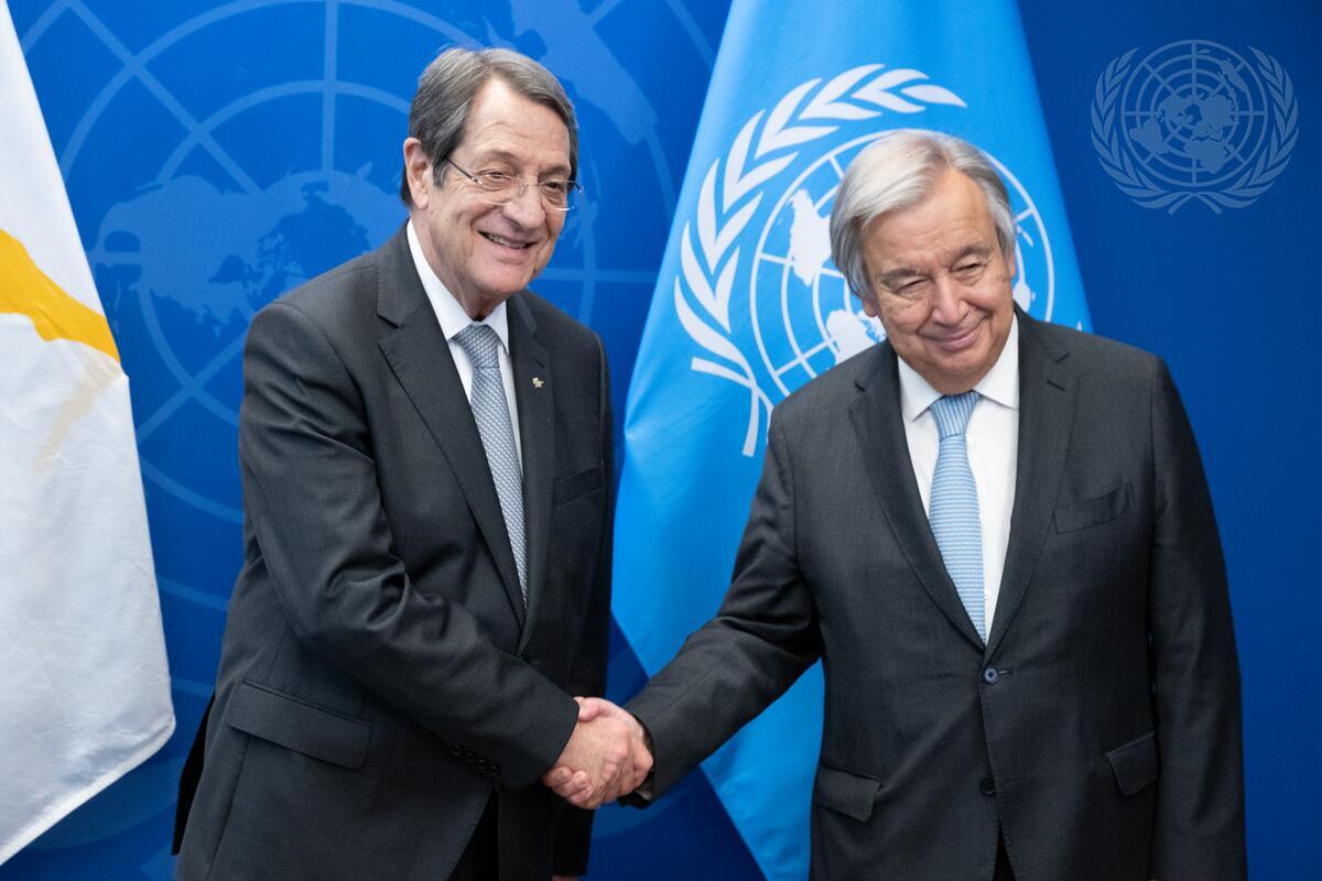 Secretary-General António Guterres (right) meets with Nicos Anastasiades, President of the Republic of Cyprus.