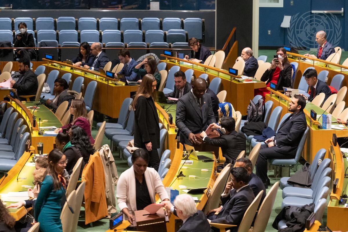 A view of the 34th plenary meeting of the General Assembly. The Assembly appoints Judges of the United Nations Appeals Tribunal.