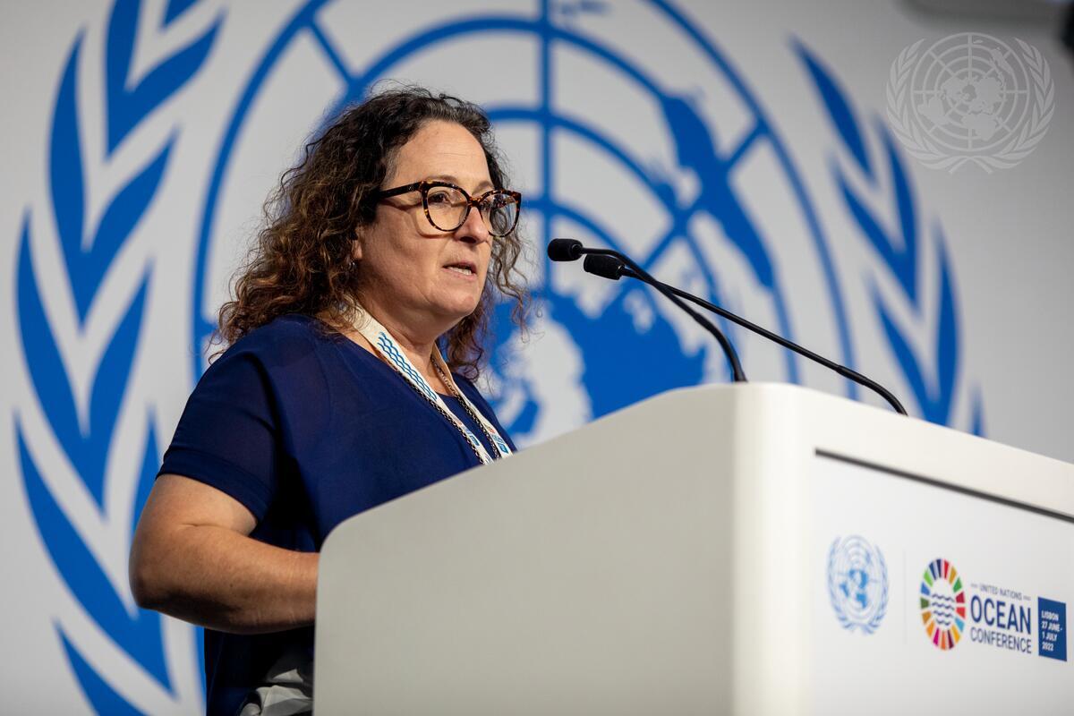 A representative of Regular Process for Global Reporting and Assessment of the State of the Marine Environment addresses the United Nations 2022 Ocean Conference in Lisbon, Portugal.