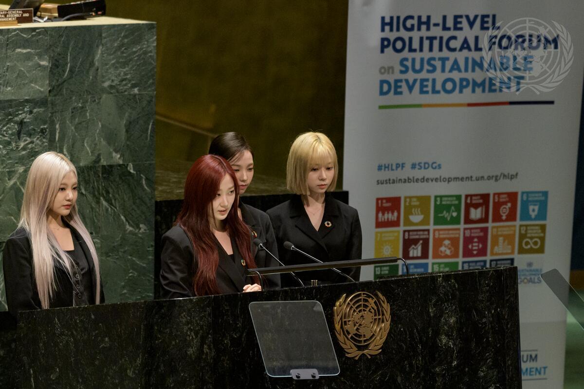 K-pop group aespa delivers a message during the high-level Political Forum on sustainable development convened under the auspices of the Economic and Social Council 2022 session (5-15 July). The Forum is held under the theme: “Building back better from the coronavirus disease (COVID-19) while advancing the full implementation of the 2030 Agenda for Sustainable Development”.