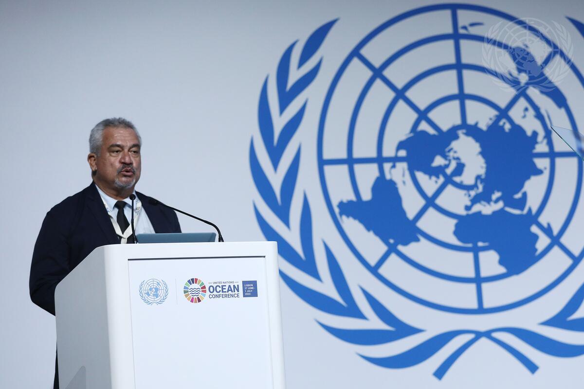 A representative of French Polynesia addresses the United Nations 2022 Ocean Conference in Lisbon, Portugal.