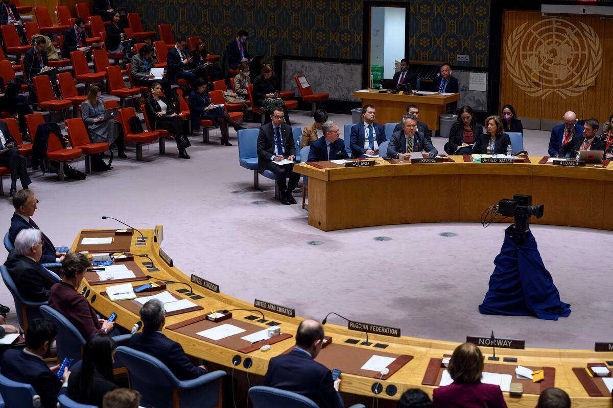 A view of the Security Council meeting on maintenance of peace and security of Ukraine.