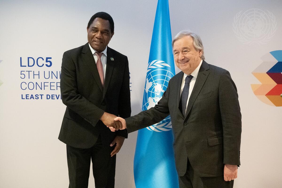 Secretary-General Meets with President of Zambia at the Least Developed Countries Conference in Doha, Qatar