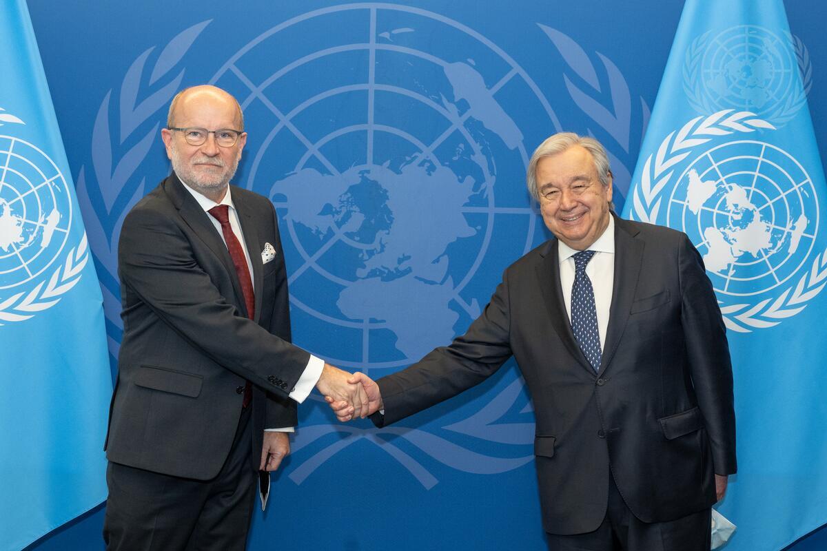 Secretary-General António Guterres (right) meets with Rastislav Káčer, Minister of European and Foreign Affairs of the Slovak Republic.