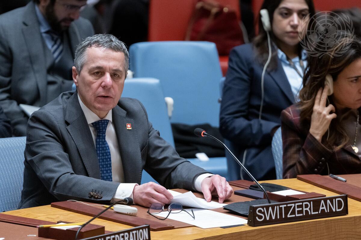 Ignazio Cassis, Federal Councillor and Head of the Federal Department of Foreign Affairs of Switzerland, addresses the Security Council meeting on maintenance of peace and security of Ukraine.