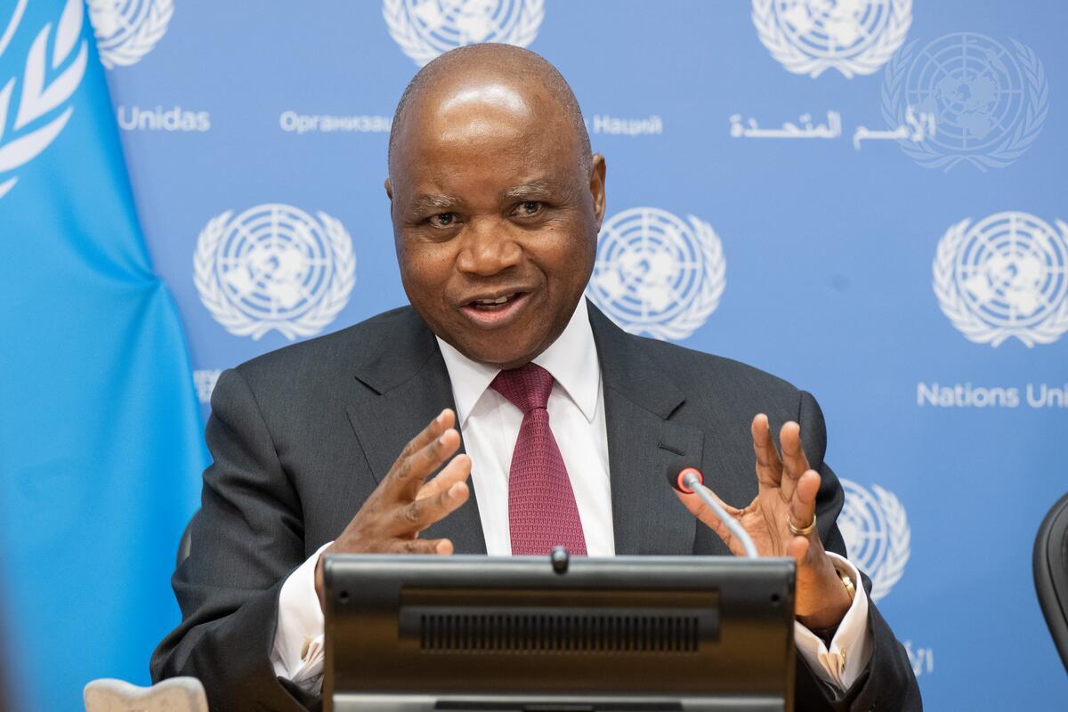 Pedro Comissário Afonso, Permanent Representative of the Republic of Mozambique to the United Nation and President of the Security Council for the month of March, briefs reporters on the programme of work for the month of the Security Council.