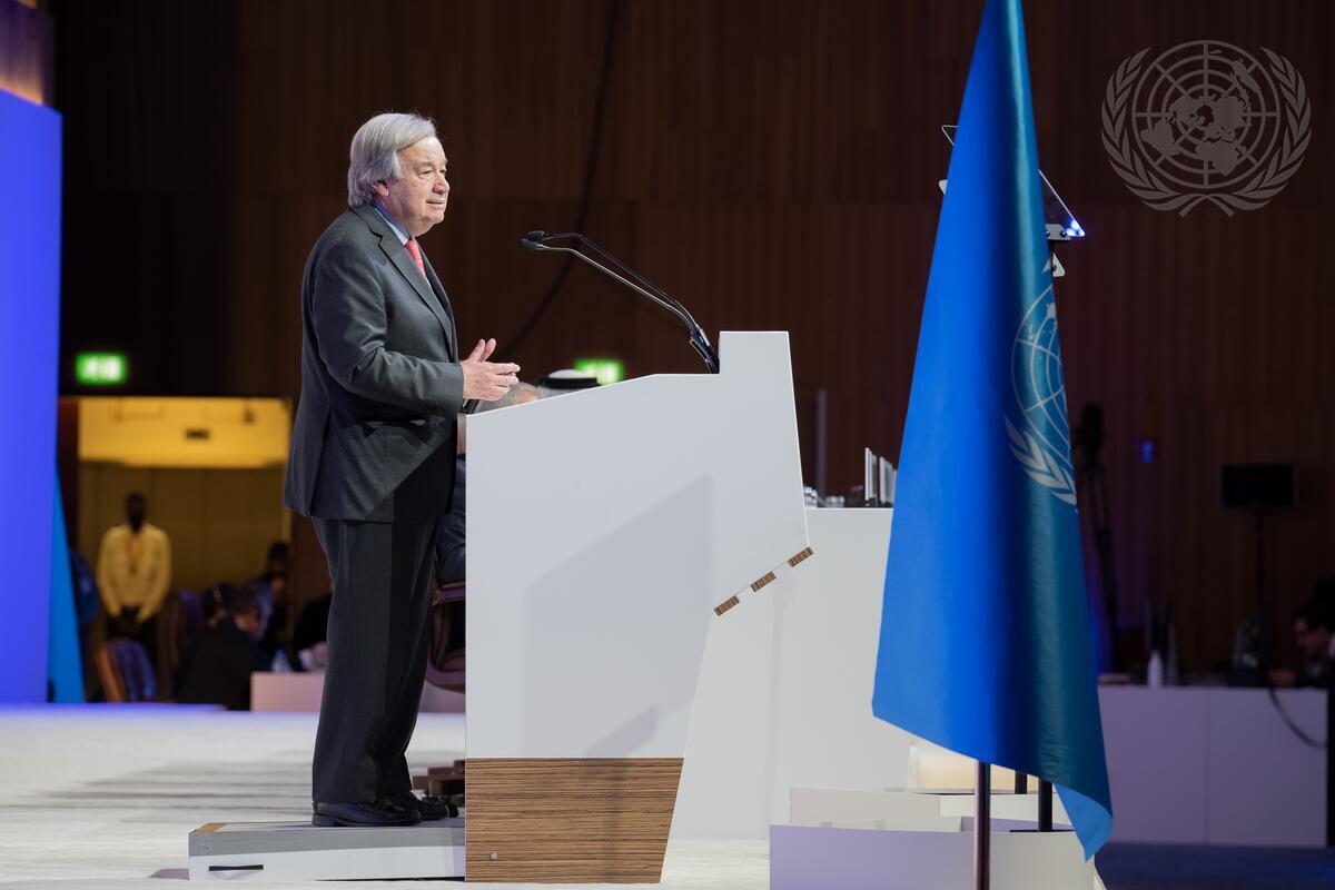 Secretary-General António Guterres delivers remarks at the First Plenary Session of the Fifth Conference of Least Developed Countries (LDC5) taking place in Doha, Qatar from 5 to 9 March, 2023.