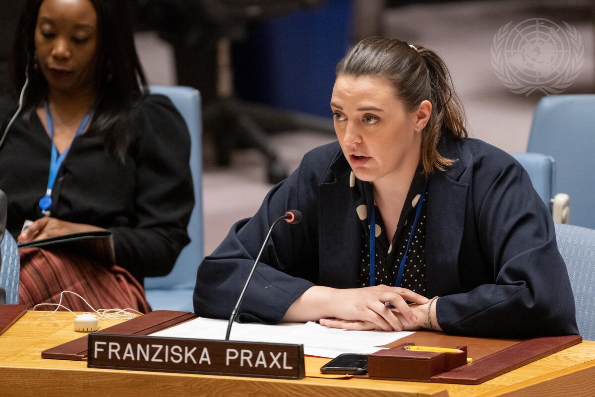 Franziska Praxl, Director of Multilateral Relations of the Global Center on Cooperative Security, briefs the Security Council meeting on threats to international peace and security caused by terrorist acts. The Council hears the sixteenth report of the Secretary-General on the threat posed by ISIL (Da’esh) to international peace and security and the range of United Nations efforts in support of Member States in countering the threat.