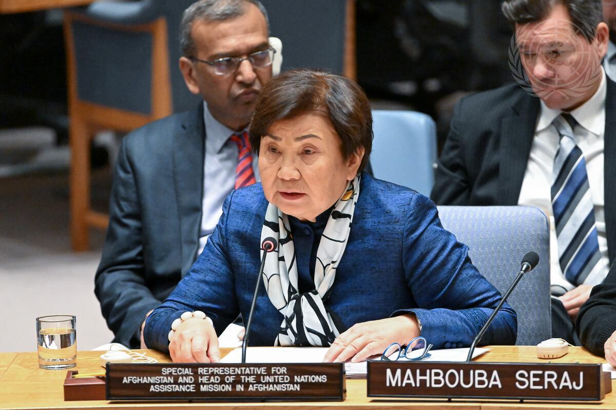 Roza Otunbayeva, Special Representative of the Secretary-General and Head of the United Nations Assistance Mission in Afghanistan, briefs the Security Council meeting on the situation in Afghanistan.