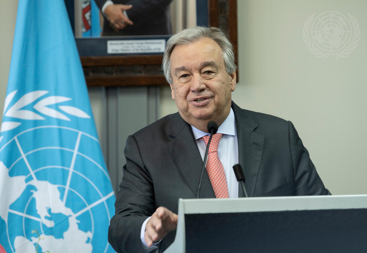 Secretary-General António Guterres holds a joint press conference with Josaia Voreqe Bainimarama (not pictured), Prime Minister and Minister for Itaukei Affairs of the Republic of Fiji.