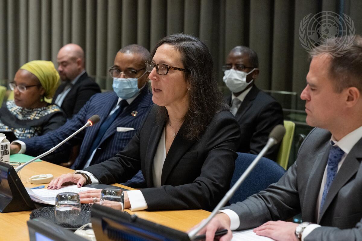 Michele Rosenthal (second from right), Trauma Recovery Specialist, addresses the event entitled “International Day of Commemoration and Dignity of the Victims of the Crime of Genocide and of the Prevention of this Crime and Seventy-fourth Anniversary of the Convention on the Prevention and Punishment of the Crime of Genocide”.