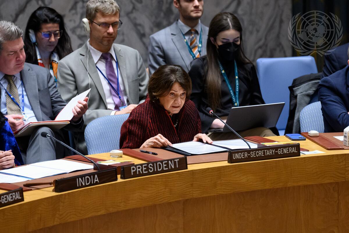 Rosemary DiCarlo, Under-Secretary-General for Political and Peacebuilding Affairs, briefs the Security Council meeting on non-proliferation and the Islamic Republic of Iran.