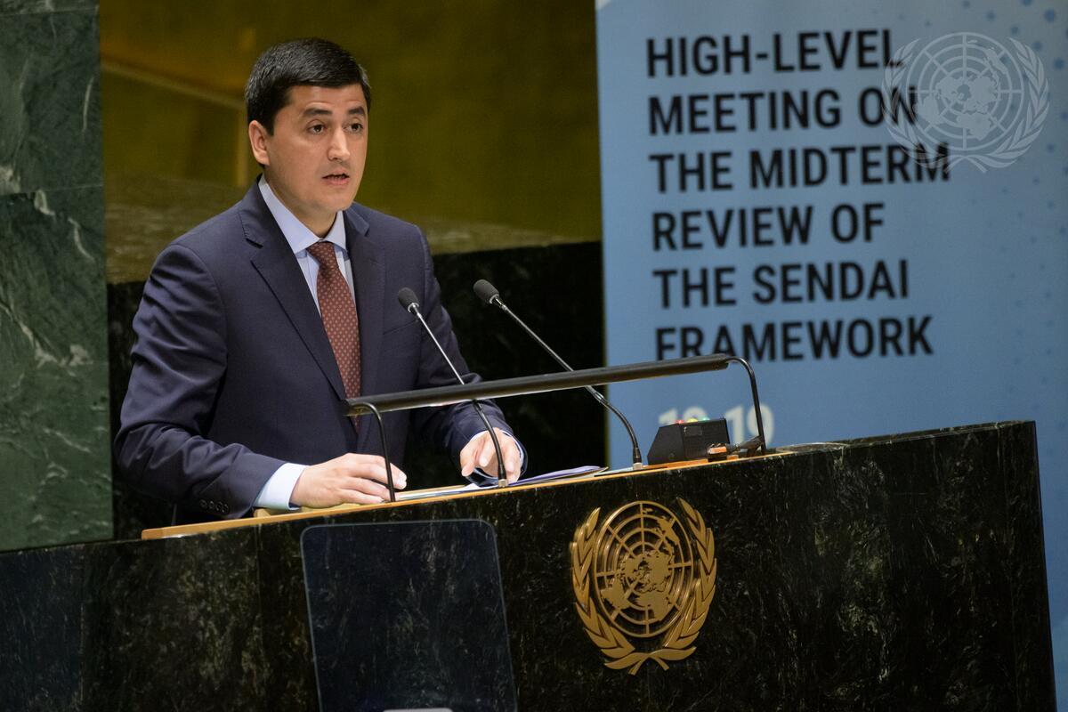 Sheralizoda Bahodur Ahmadjon, Chairman of the Committee for Environmental Protection under the Government of the Republic of Tajikistan, addresses the General Assembly high-level meeting on the Midterm Review of the Sendai Framework for Disaster Risk Reduction 2015-2030 on the theme: "Working Together to Reduce Risk for a Resilient Future". The plenary focused on “Charting liveable pathways for humans and nature”.