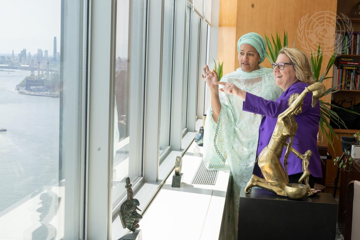 Deputy Secretary-General Amina Mohammed (left) meets with Svenja Schulze, Federal Minister for Economic Cooperation and Development of the Federal Republic of Germany.