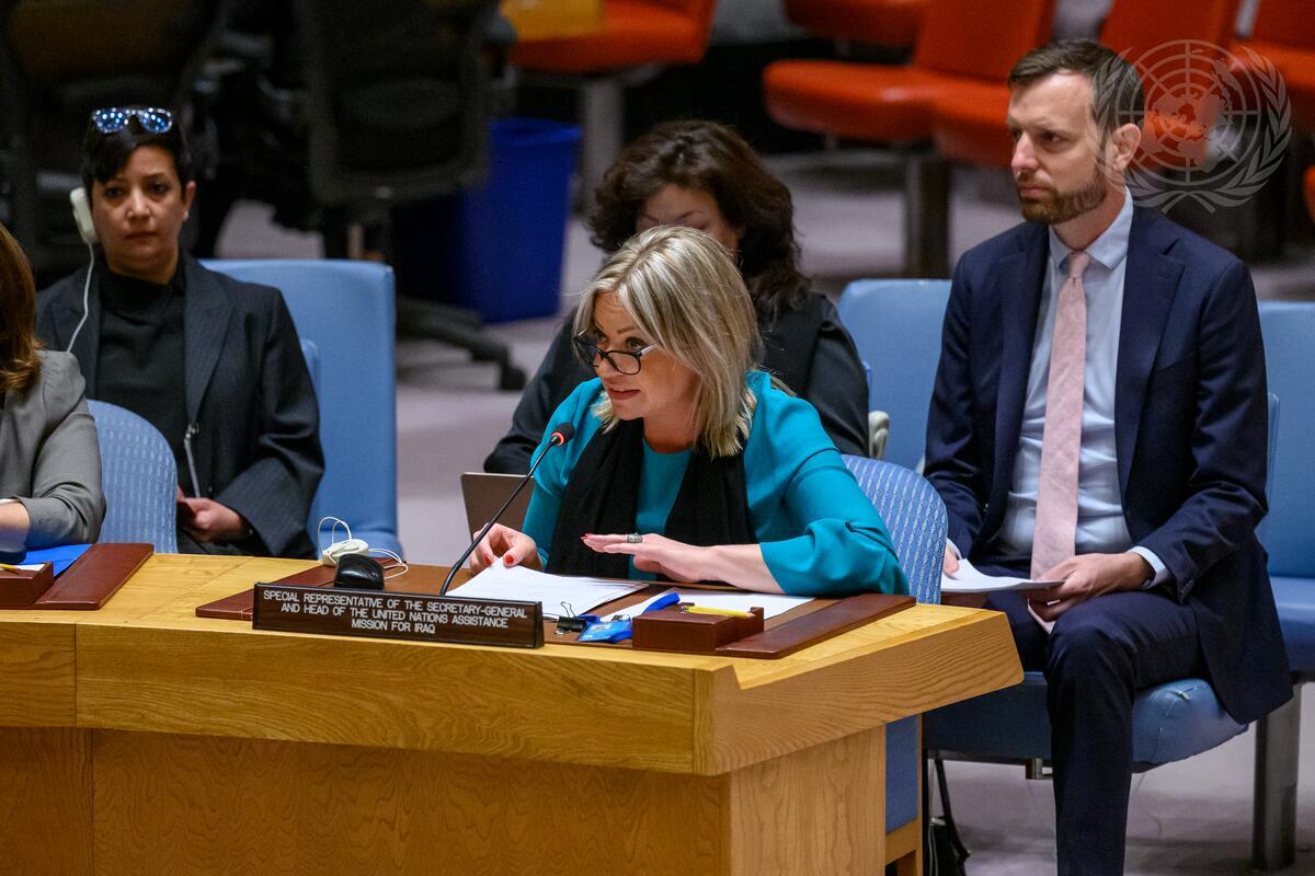 Jeanine Hennis-Plasschaert, Special Representative of the Secretary-General and Head of the United Nations Assistance Mission for Iraq, briefs the Security Council meeting on the situation concerning Iraq.