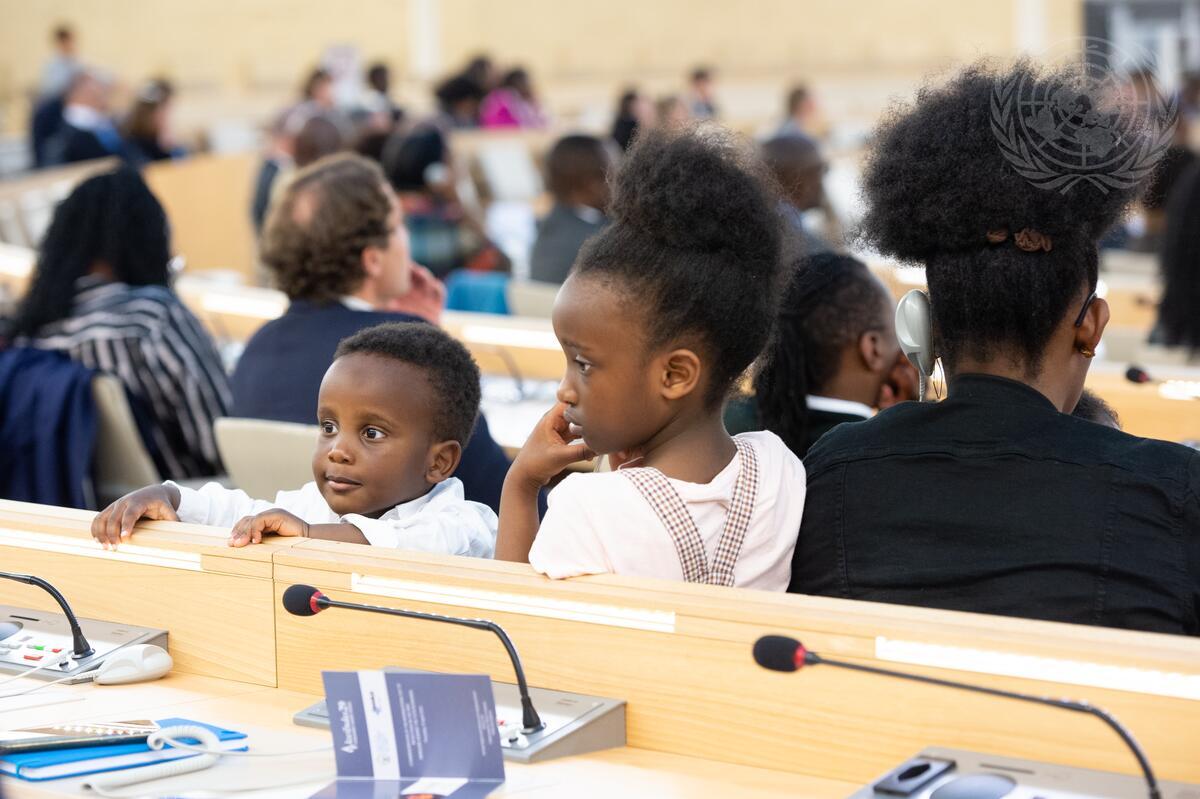 A view of two young participants during the Commemoration of the International Day of Reflection on the 1994 Genocide Against the Tutsi in Rwanda held in Geneva.