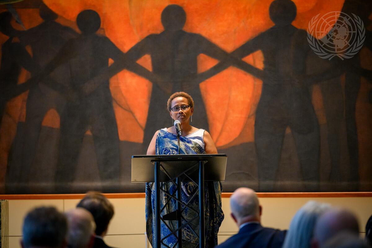 Immaculée Mukantaganira, shares her reflections as a survivor of the 1994 genocide against the Tutsi in Rwanda, during the opening of the exhibit “Stories of Survival and Remembrance – A Call to Action for Genocide Prevention”. The exhibit is a joint project of United Nations Department of Global Communications and UN Office on Genocide Prevention and the Responsibility to Protect. It is based on a project of Illinois Holocaust Museum and Education Center and Jim Lommasson.
