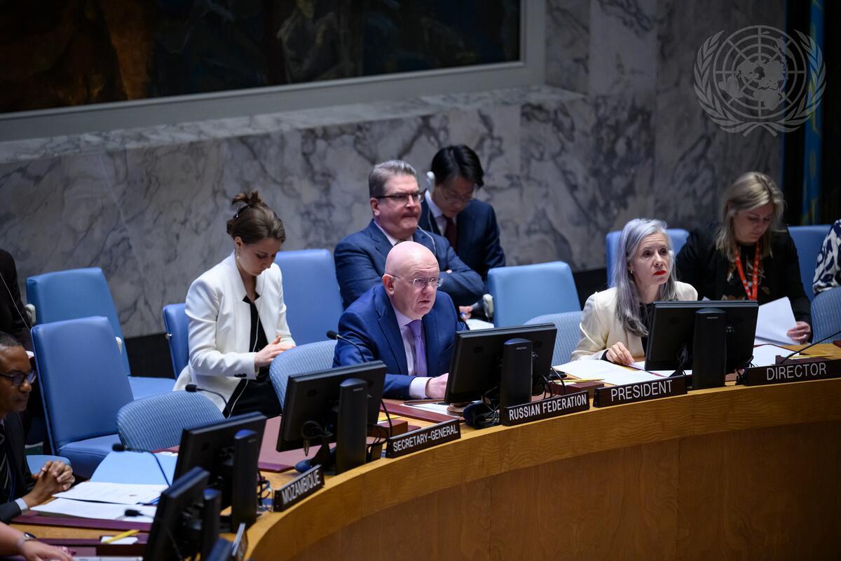 Vassily Nebenzia, Permanent Representative of the Russian Federation and President of the Security Council for the month of April, chairs the Security Council meeting on the United Nations Verification Mission in Colombia.