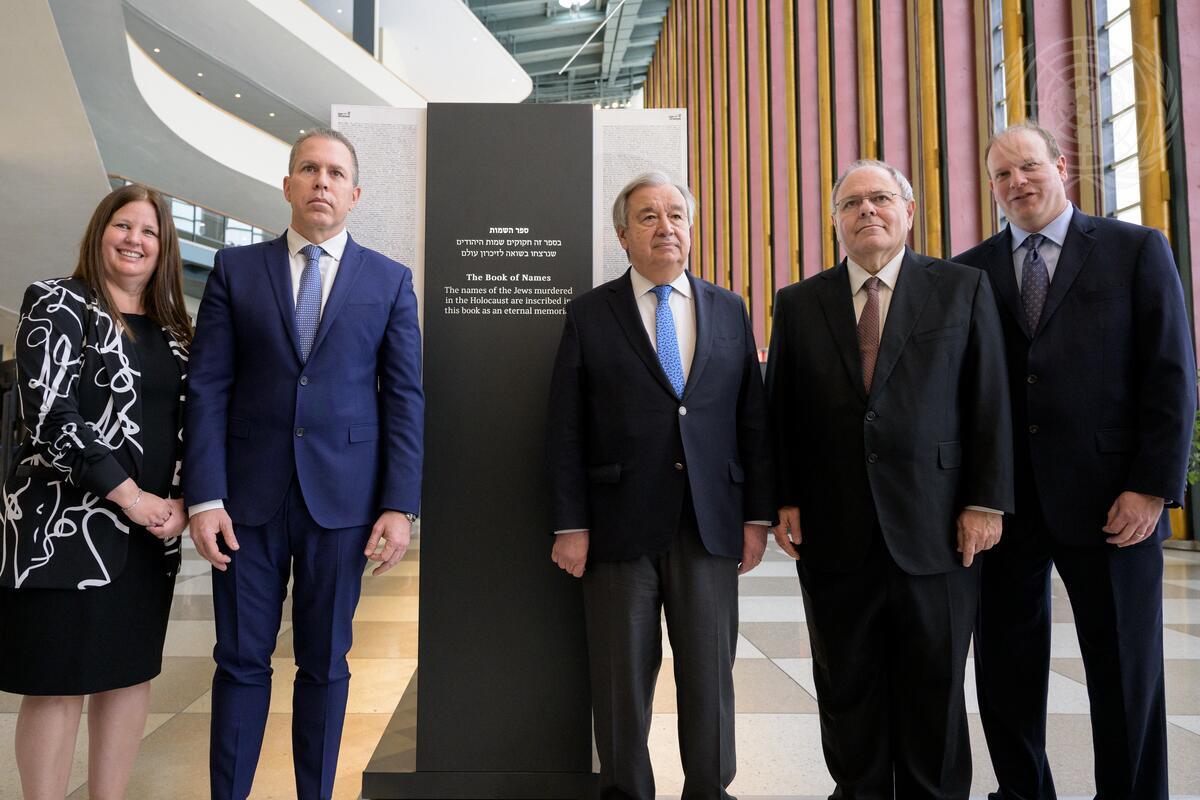 Secretary-General António Guterres (centre) and Gilad Erdan (second from left), Permanent Representative of Israel to the United Nations, attend the opening of the exhibition “The Yad Vashem Book of Names of Holocaust Victims”. “The Yad Vashem Book of Names of Holocaust Victims” details alphabetically the name of each of the approximately 4.8 million Holocaust victims that Yad Vashem, the World Holocaust Remembrance, has currently documented and confirmed.