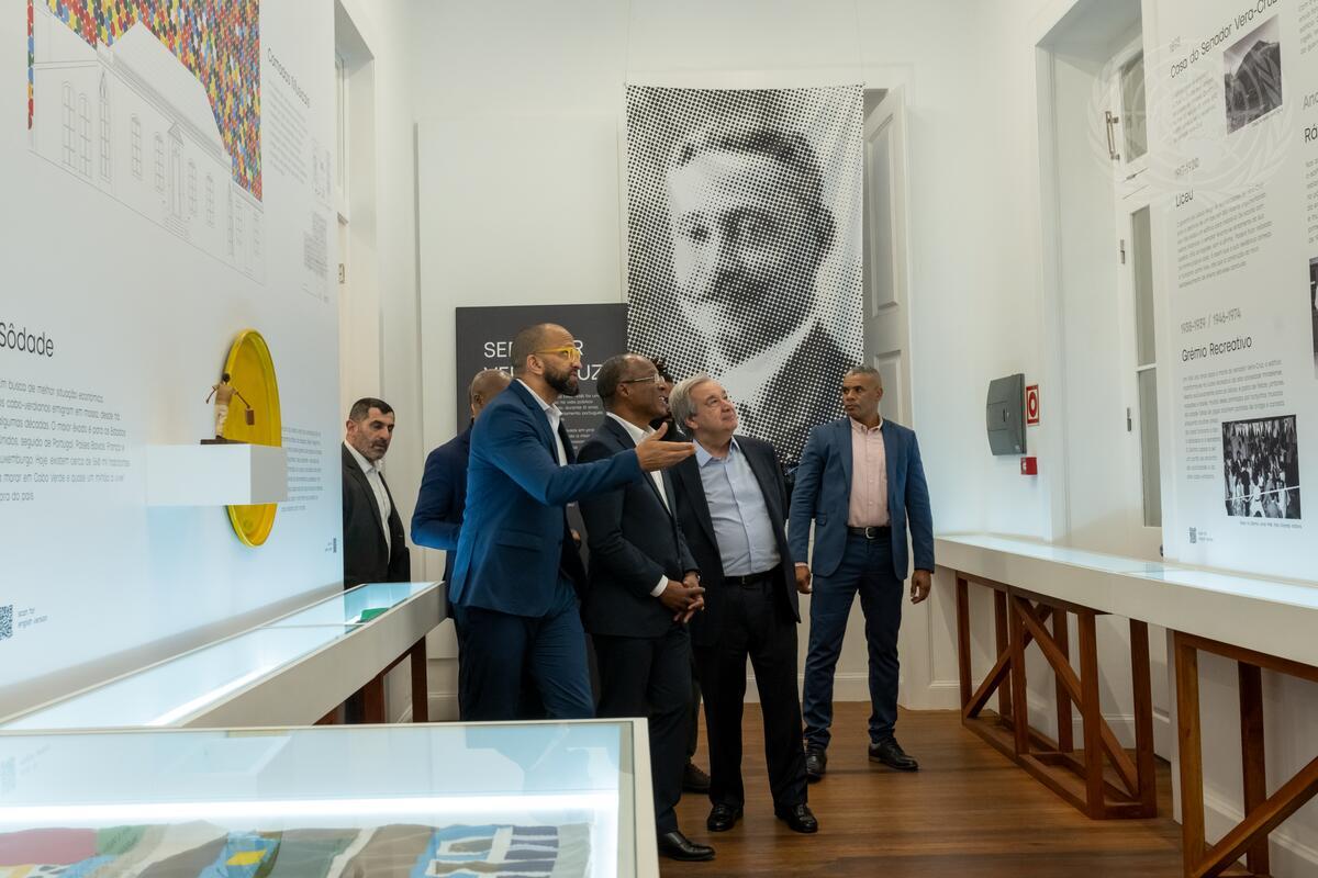 Secretary-General António Guterres (second from right) and José Ulisses Correia e Silva (third from right), Prime Minister of the Republic of Cabo Verde, tour the cultural center in São Vicente, Cabo Verde.