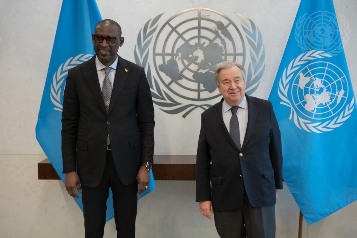 Secretary-General António Guterres (right) meets with Abdoulaye Diop, Minister for Foreign Affairs and Cooperation of Mali.
