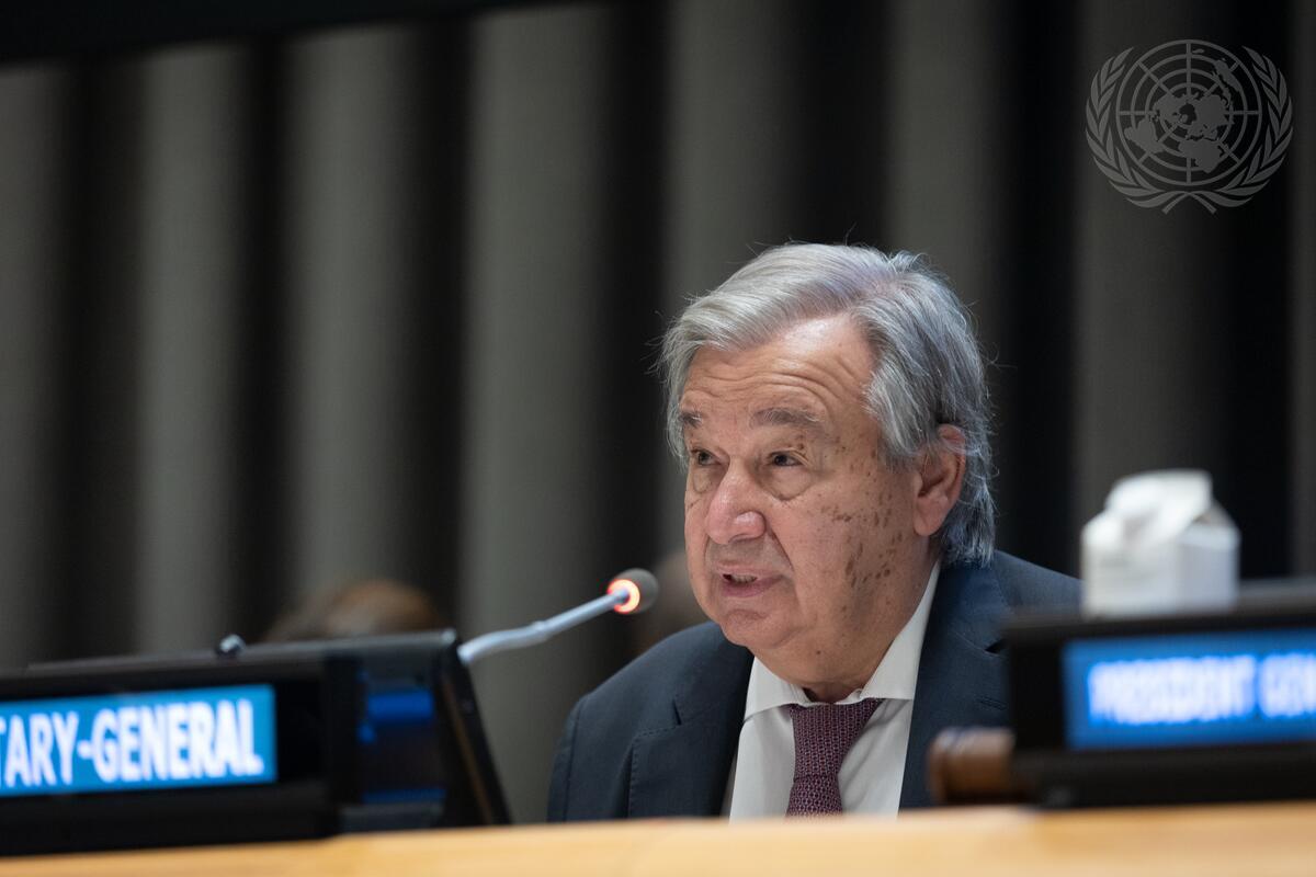Secretary-General António Guterres addresses the high-level plenary meeting to commemorate and promote the International Day for the Total Elimination of Nuclear Weapons.