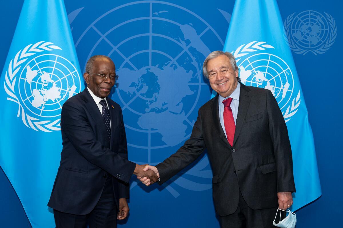 Secretary-General António Guterres (right) meets with Adriano Afonso Maleiane, Prime Minister of the Republic of Mozambique.