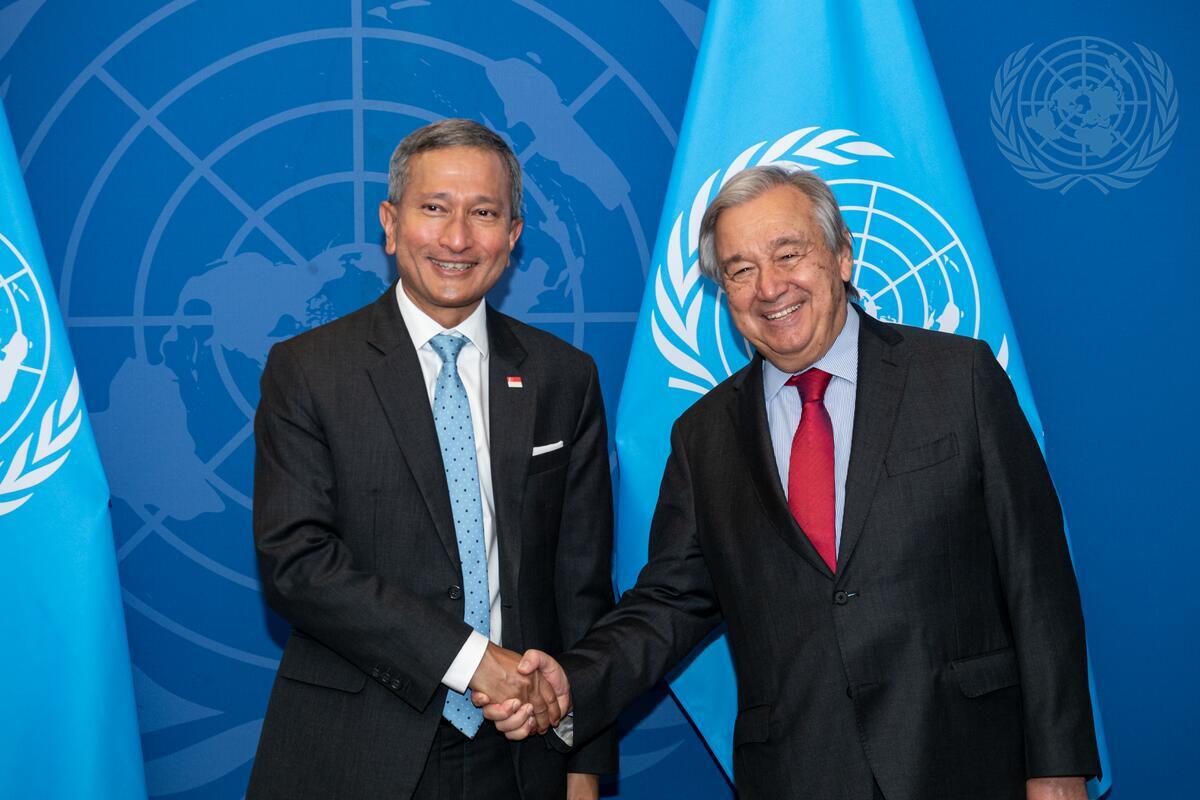 Secretary-General António Guterres (right) meets with Vivian Balakrishnan, Minister for Foreign Affairs of the Republic of Singapore.