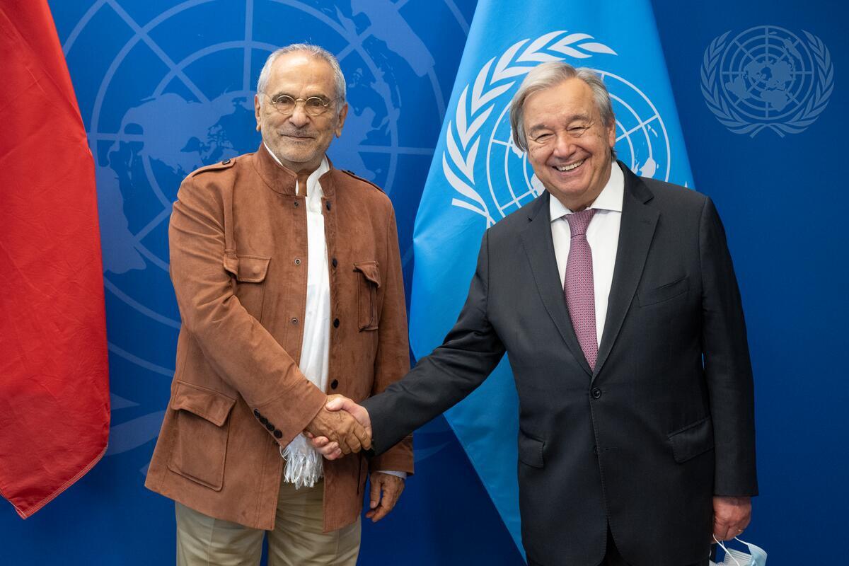 Secretary-General António Guterres (right) meets with José Ramos-Horta, President of the Democratic Republic of Timor-Leste.