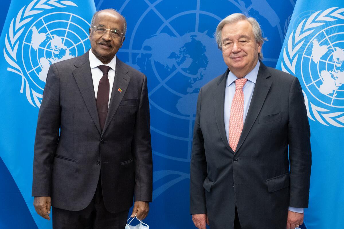 Secretary-General António Guterres (right) meets with Osman Saleh Mohammed, Minister for Foreign Affairs of the State of Eritrea.