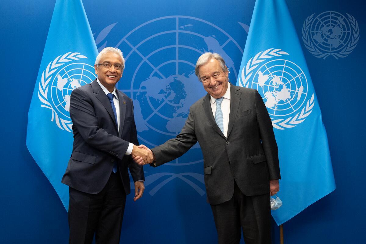 Secretary-General António Guterres (right) meets with Pravind Kumar Jugnauth,