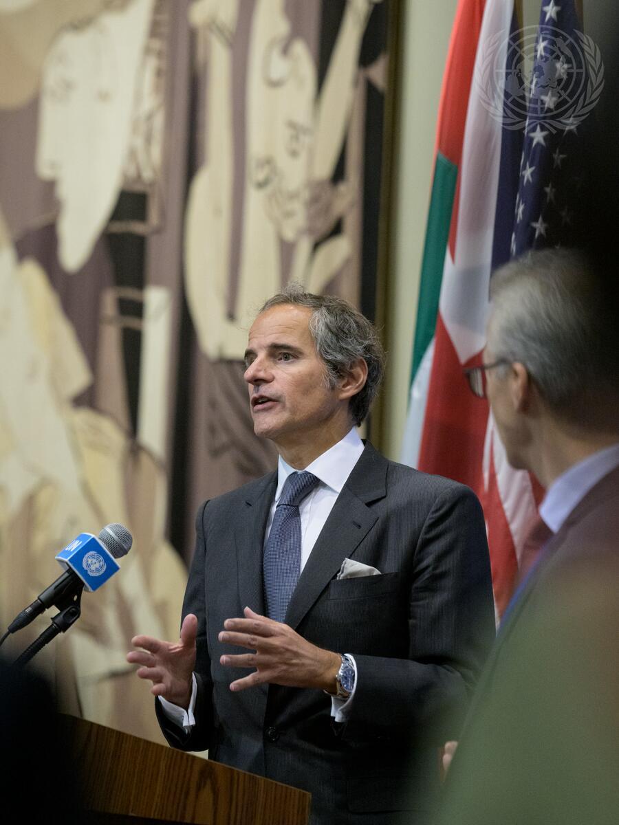 Rafael Mariano Grossi, Director General of the International Atomic Energy Agency (IAEA), briefs reporters at UN Headquarters.