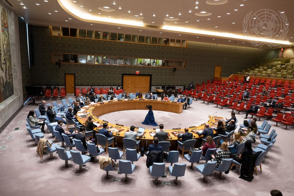 A wide view of the Security Council meeting on the situation in the Middle East (Syria).