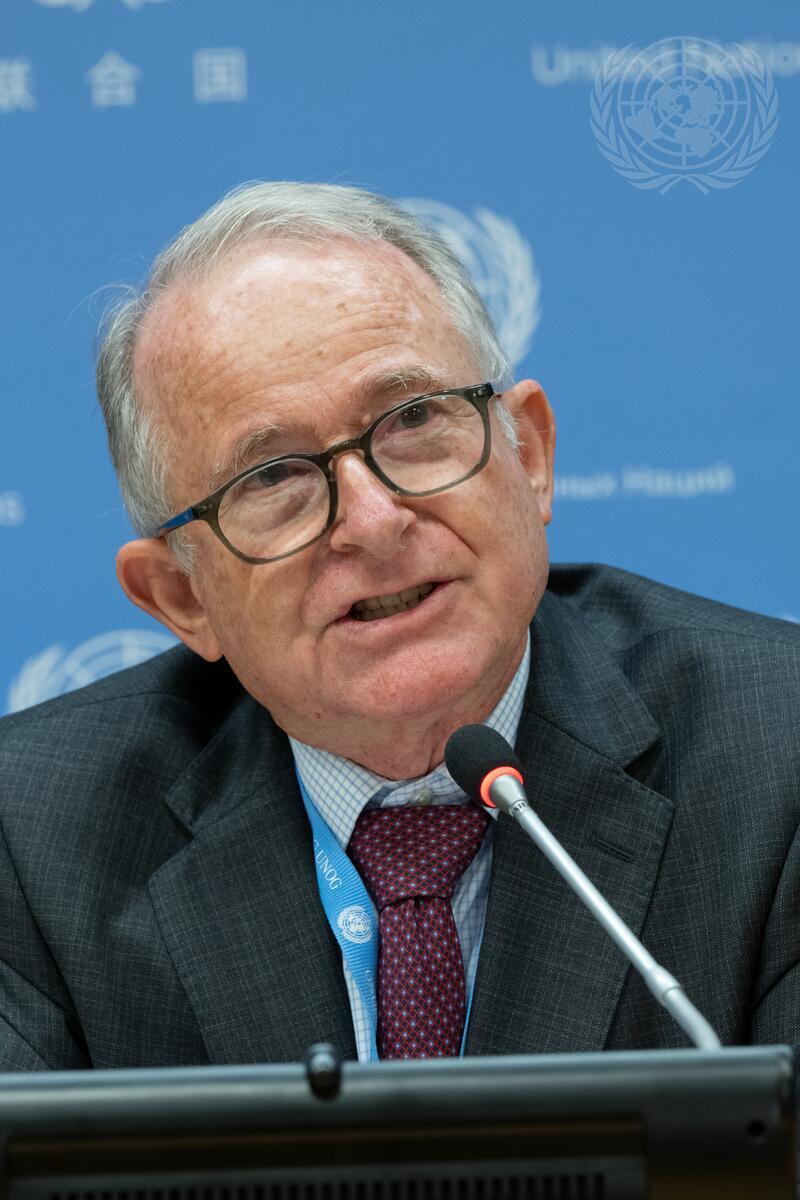 Richard Bennett, Special Rapporteur on the situation of human rights in Afghanistan, briefs reporters at UN Headquarters.