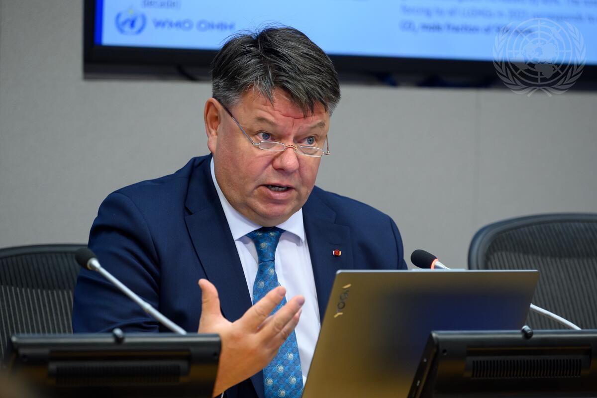Petteri Taalas, Secretary-General of the World Meteorological Organization (WMO), briefs reporters on the launch of WMO Greenhouse Gas Bulletin.