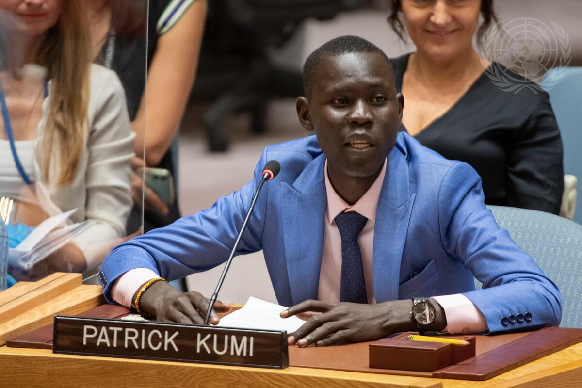 Patrick Kumi, Founder and Executive Director of the NGO Similar Ground, briefs the Security Council meeting on children and armed conflict.