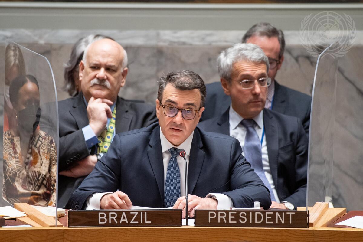 Carlos Alberto Franco França, Minister for Foreign Affairs of Brazil and President of the Security Council for the month of July, chairs the Security Council meeting on United Nations peacekeeping operations and the key role of strategic communications for efficient peacekeeping.