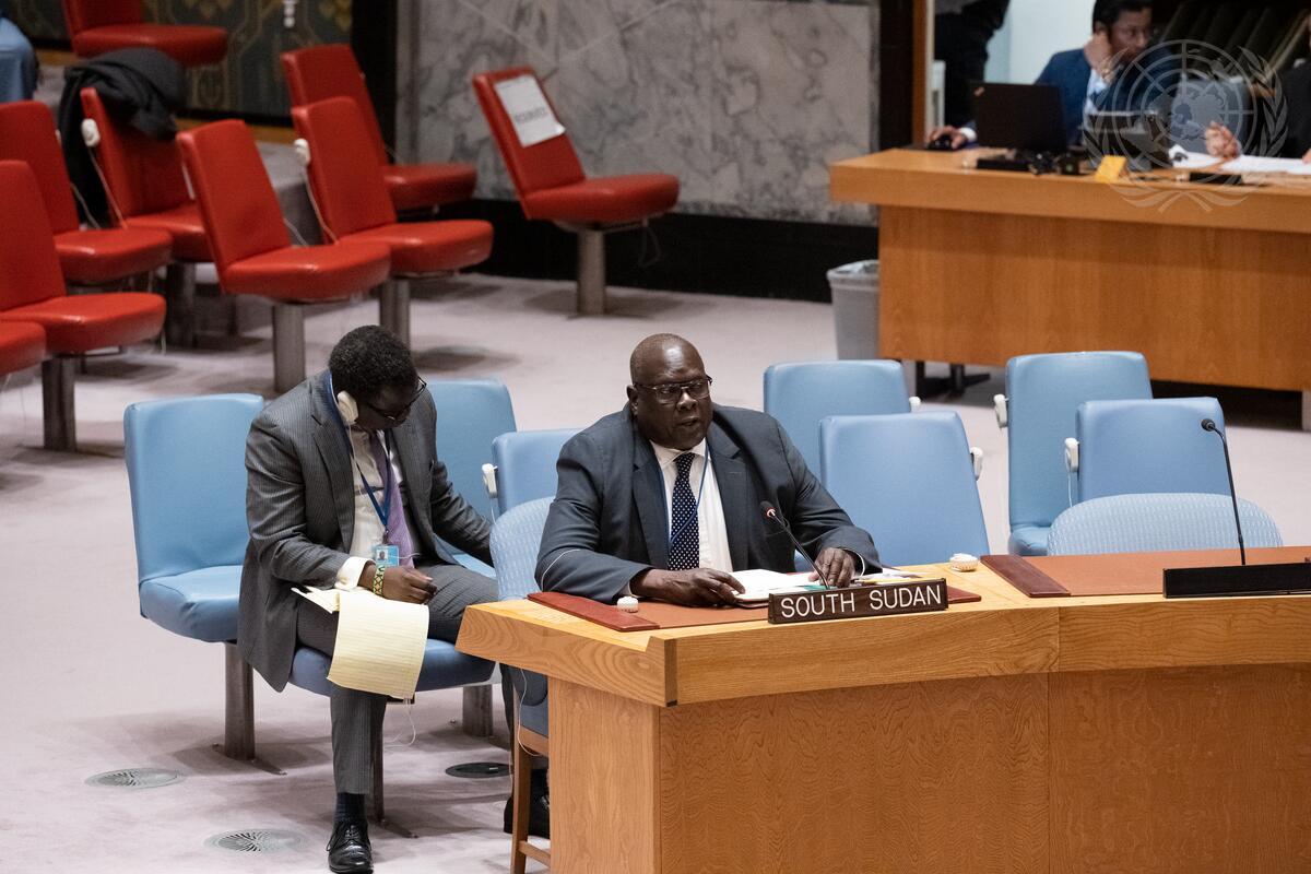 Akuei Bona Malwal, Permanent Representative of the Republic of South Sudan to the United Nations, addresses the Security Council meeting on the Sudan and South Sudan.
