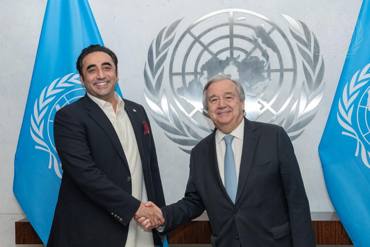 Secretary-General António Guterres (right) meets with Bilawal Bhutto Zardari, Foreign Minister of Pakistan.